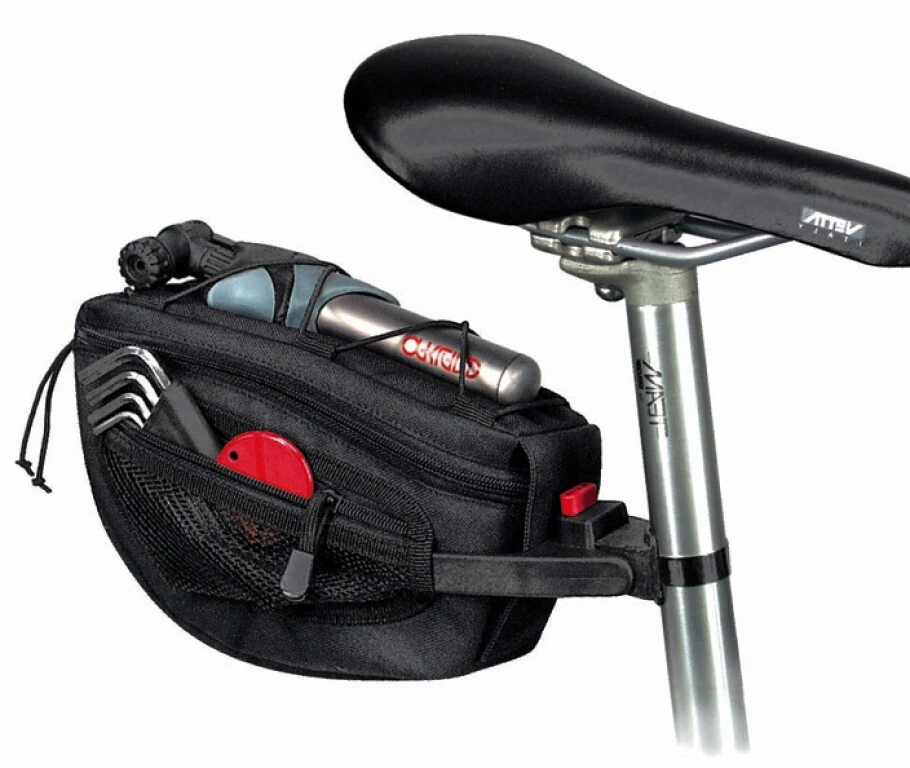 Un sac compact extensible avec une fixation robuste renforcée en fibres de verre. Particulièrement adapté à l’utilisation avec un VTT grâce à sa forme compacte. Un compartiment principal volumineux, des poches filet de chaque côté, un élastique sur le dessus. Comprend une poignée pour le transport, un support à lumière et un réflecteur. Le dessous de la sacoche en vinyle est facile à nettoyer.