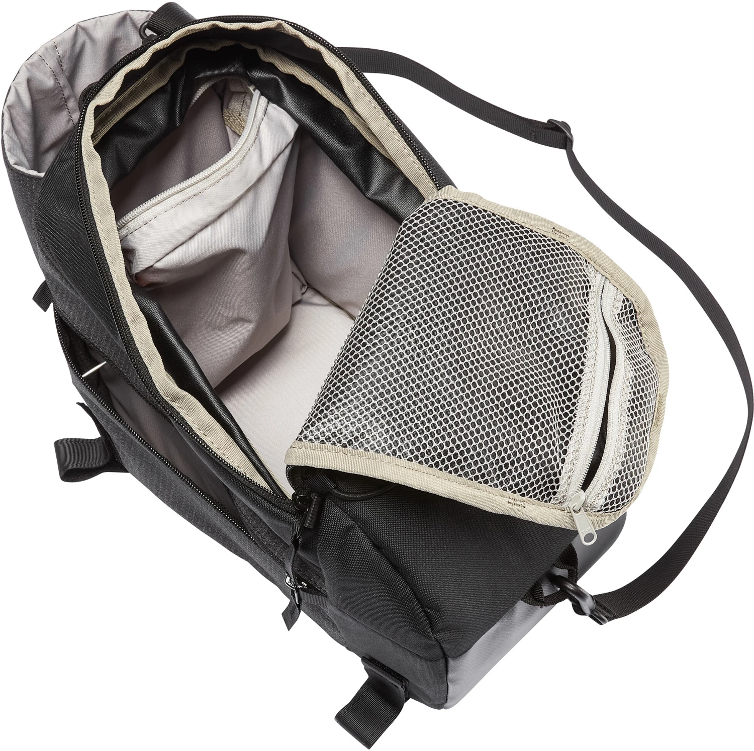 | Poches extérieures | Compartiment à fermeture éclair dans le couvercle, Porte bidon, 2 compartiments latéraux |